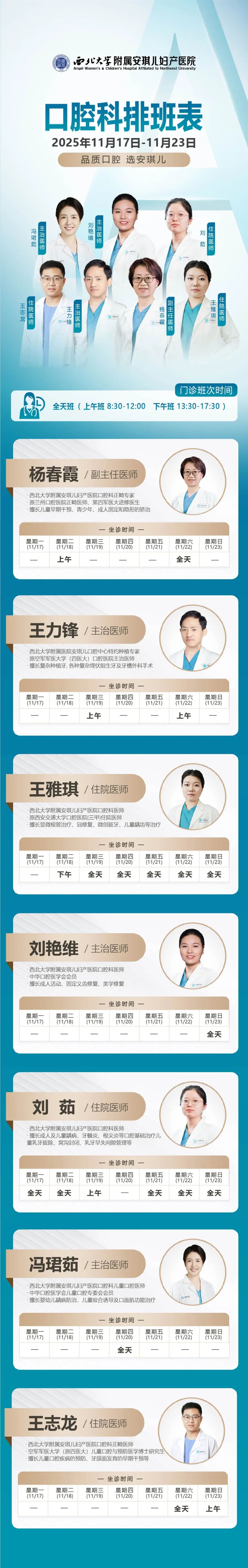 西安安琪儿妇产医院(11月17日至11月23日)专家坐诊时间表