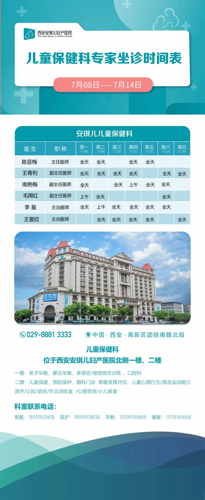 西安安琪儿国庆中秋双节假期门诊排班表来啦 请收好~
