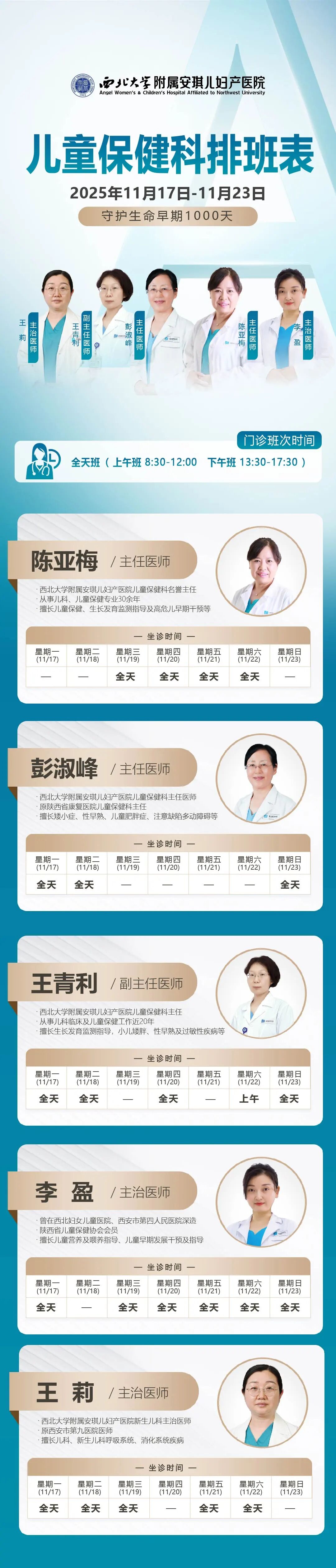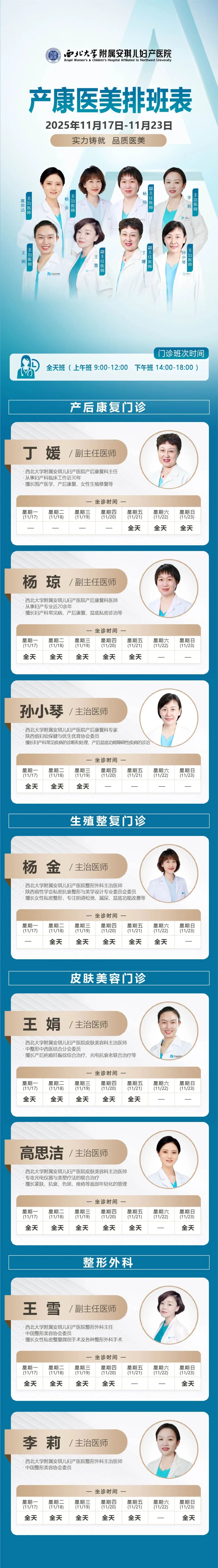 西安安琪儿妇产医院(11月17日至11月23日)专家坐诊时间表